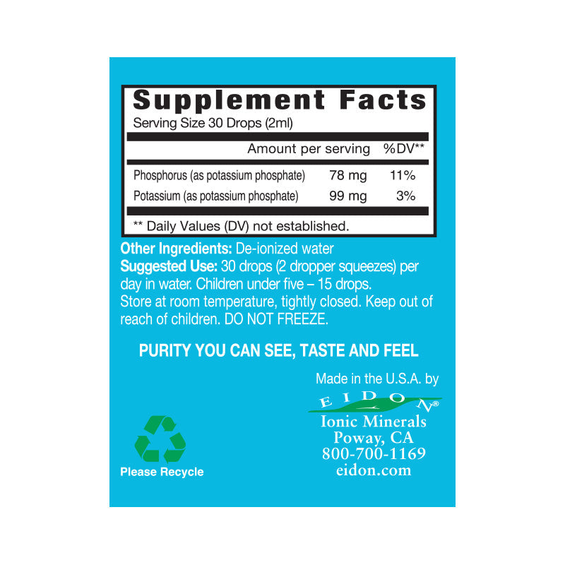 Given we do not know how much Phosphorus we are getting daily, it may be a good idea to supplement. Thus, Eidon is now offering a bioavailable form of Phosphorus with Potassium.